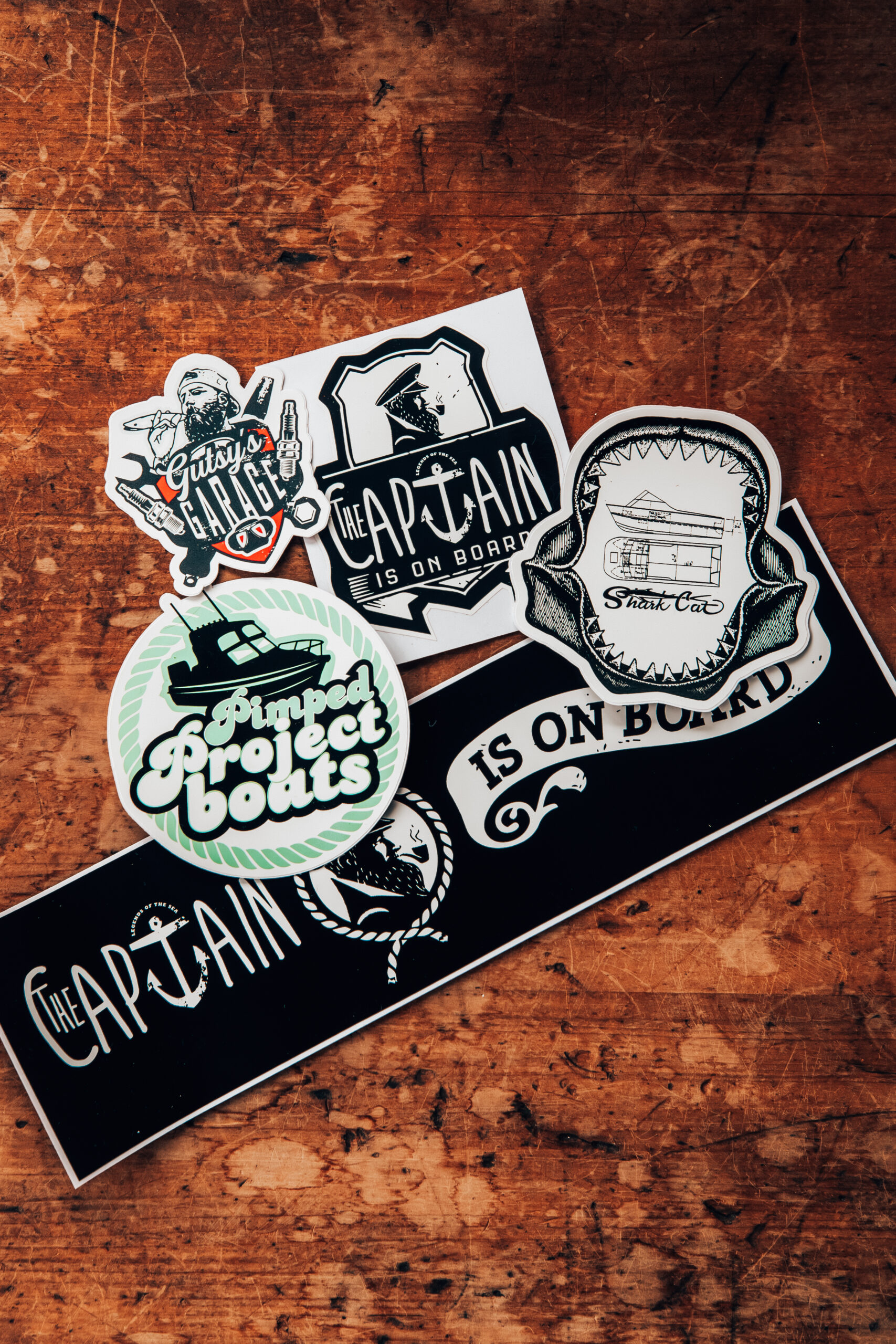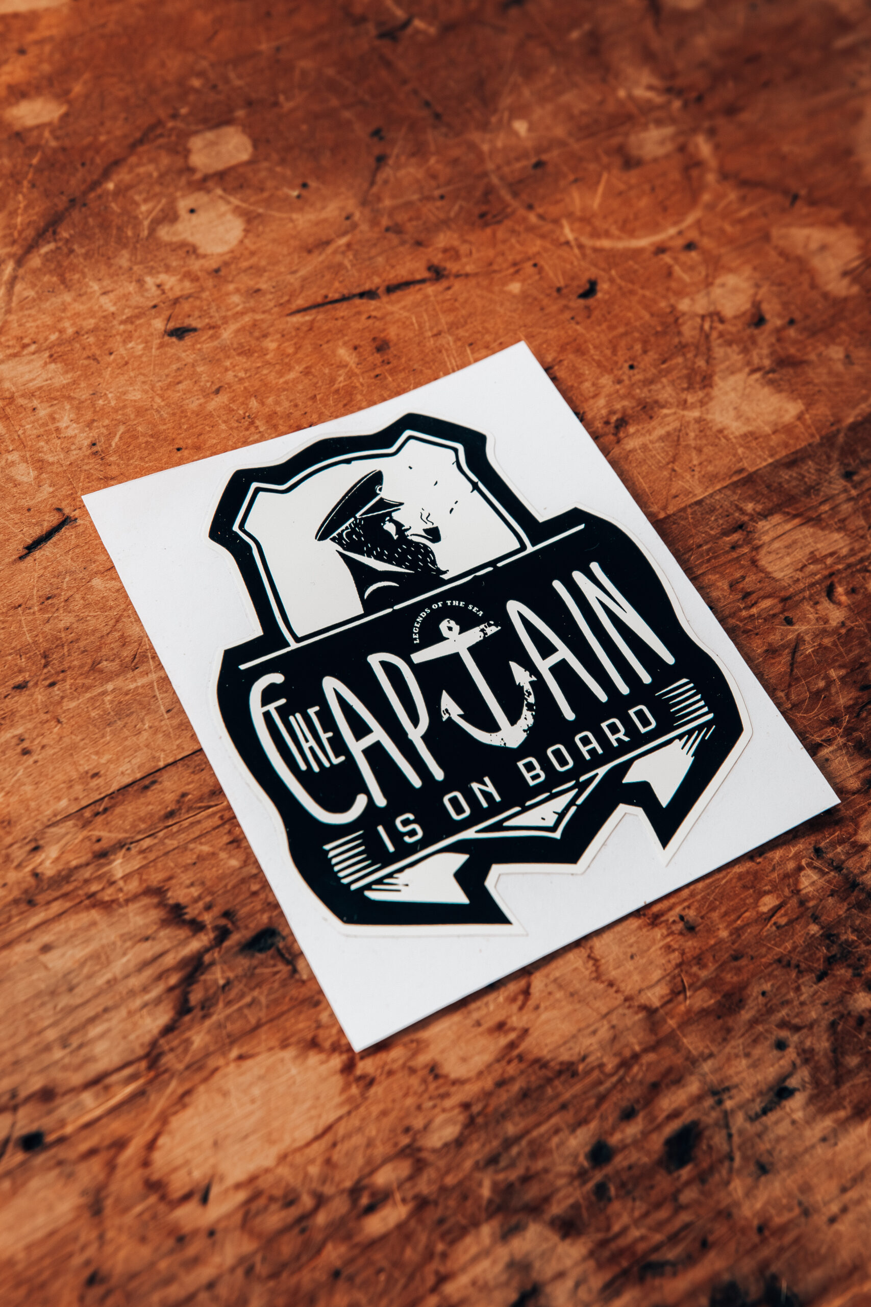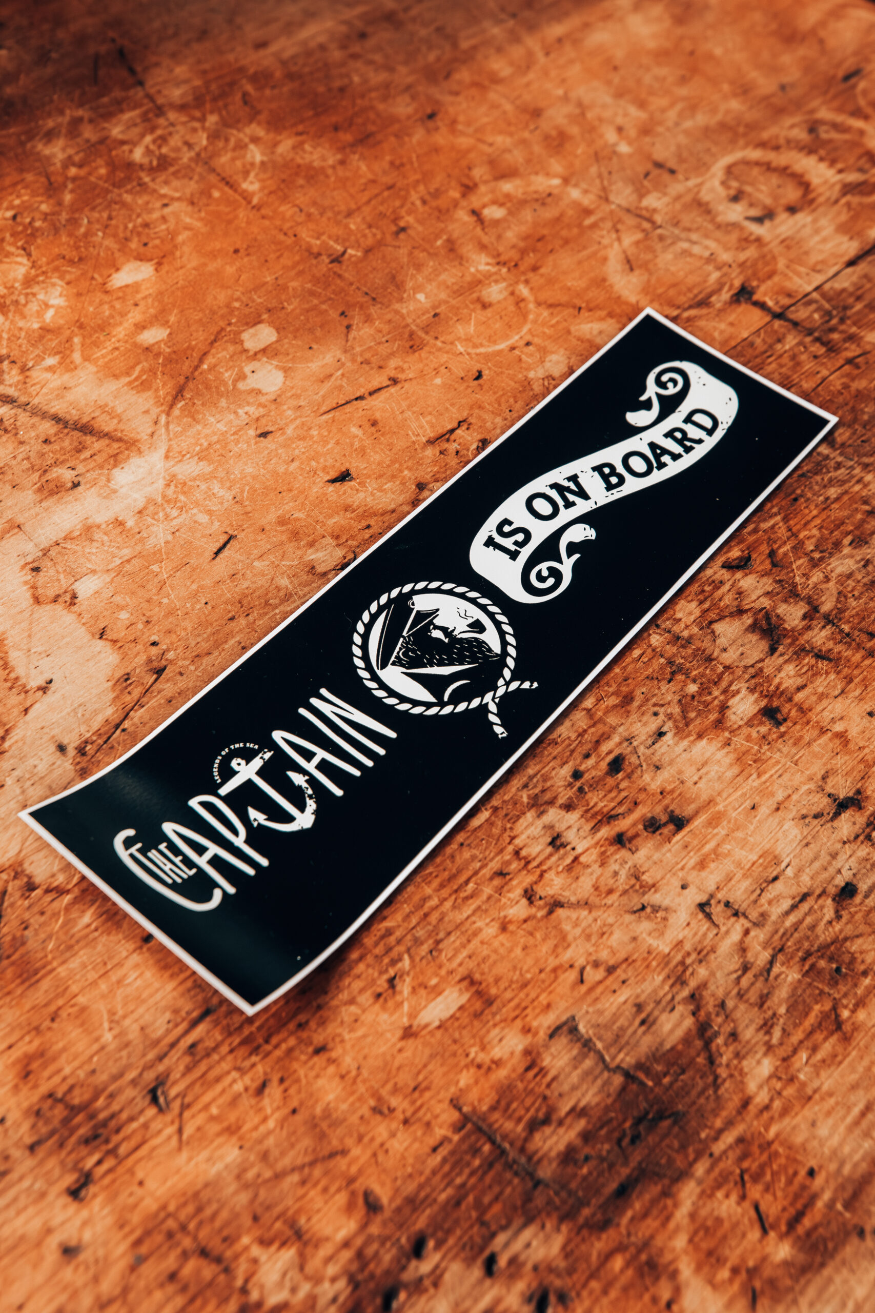 - Captain bumper sticker stylish sash: 410mm wide x 120mm high, color – black and white, matte finish